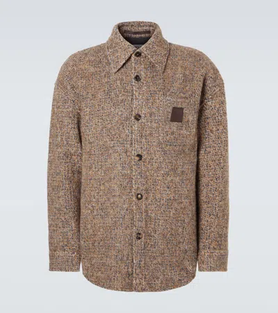 LOEWE Embroidered Wool Blend Oversize Shirt In Brown
