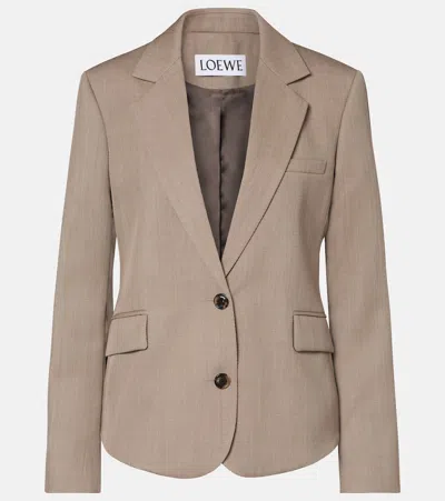 Material: 100% wool. Care instructions: dry clean. Made in Italy. Designer color name: Beige Melange. Item color: beige. Insert: 100% calf leather. Contains non-textile parts of animal origin. Lining: 100% viscose. Trim: 50% viscose, 50% wool. Collar: notch neck. Closure: single-breasted (two buttons). Pockets: flap pockets, slant pocket, internal pocket.