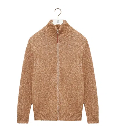 LOEWE Jacquard Anagram Zip-up Relaxed Cardigan In Brown