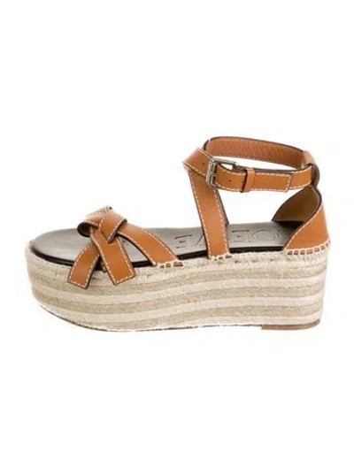 Loewe Leather Espadrilles Brown & Neutrals Platform Crossover Straps & Buckle Closure at Ankles Unfortunately, due to restrictions, this item may not be eligible for shipping in all areas. | Loewe Leather Espadrilles in Brown/Neutrals, Women's IT 41 | 11