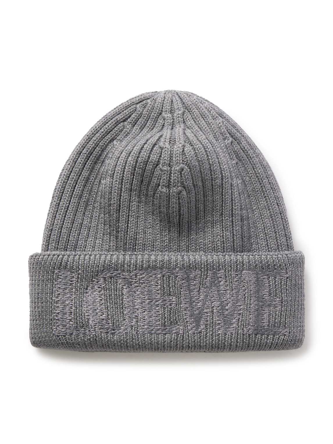 LOEWE Logo-embroidered Ribbed Wool Beanie In Gray