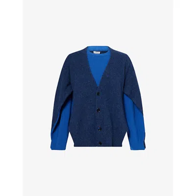 LOEWE Mens Blue/dark Blue Trompe L'oeil Layered Wool Blend Sweater Xl