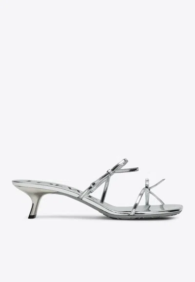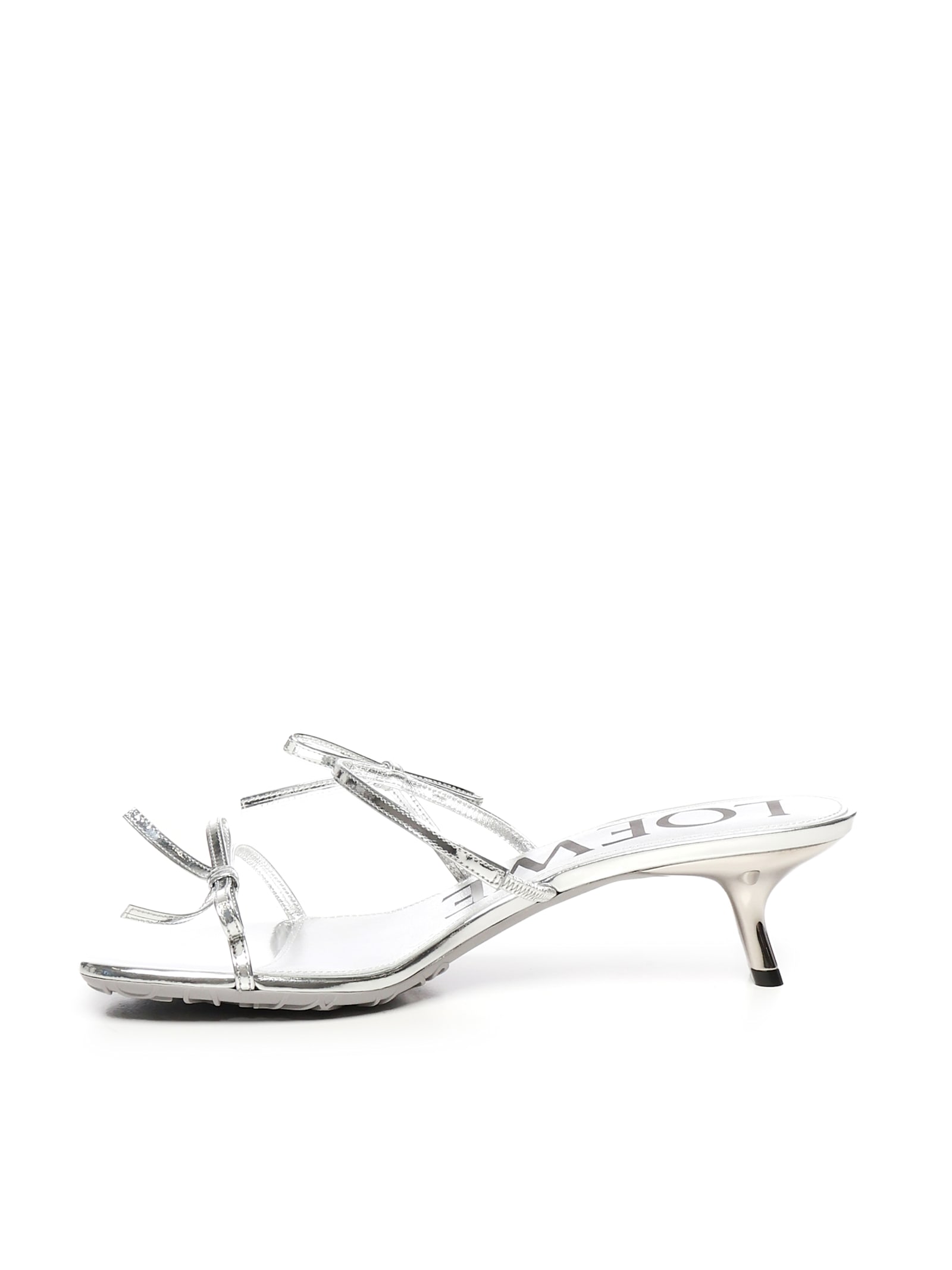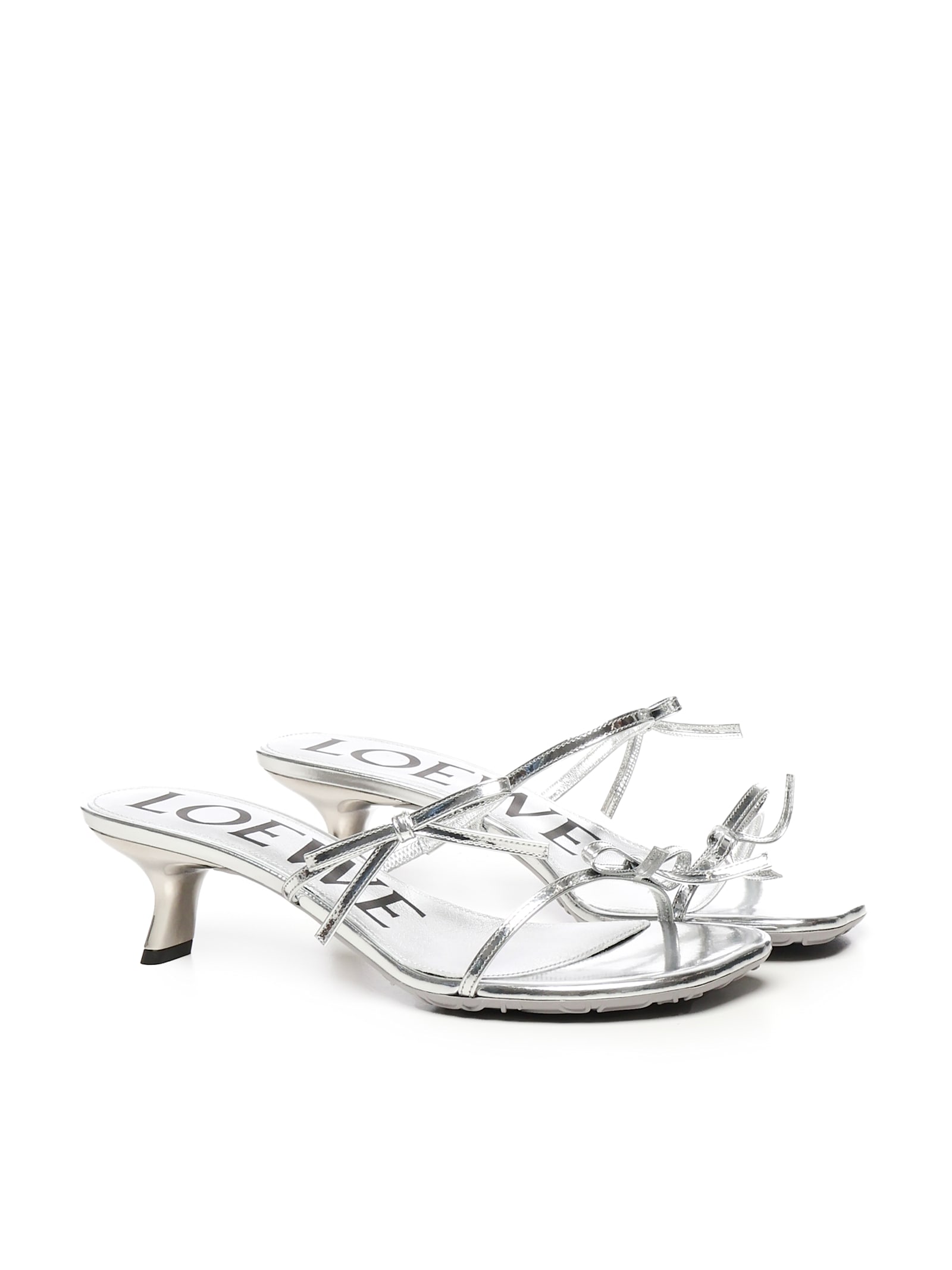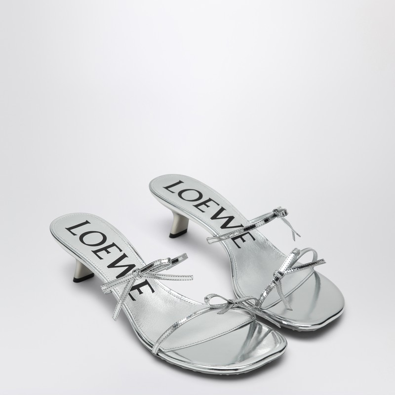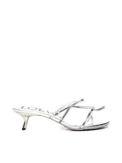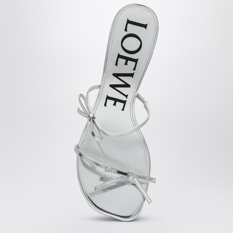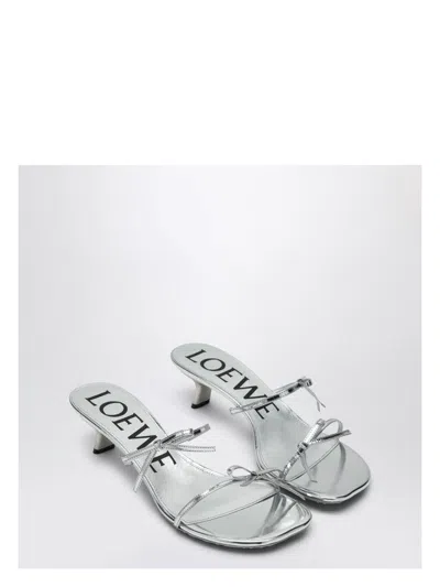 LOEWE Metallic Leather Petal Sandals 45 In Silver