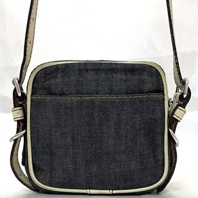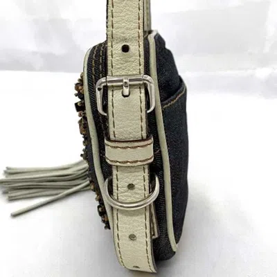 Pre-owned Navy White Denim Canvas Leather Wood Beads Pochette Shoulder Bag ()