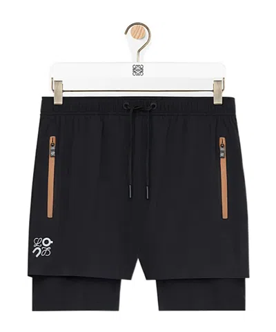 Shorts in lightweight technical shell featuring a double layer construction with built-in compression tights Regular fit short length Mid waist Elasticated waist with drawstring Waterproof zipped jet pockets Reflective Anagram placed at the front Reflective LOEWE x ON logo print placed at the back