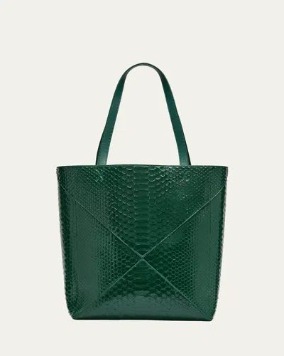 LOEWE Puzzle Fold Large Patent Python-embossed Tote Bag In Neutral
