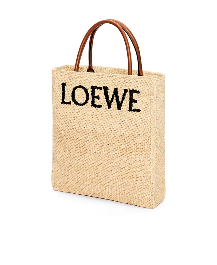 LOEWE Standard A4 Raffia Tote Bag In Natblack