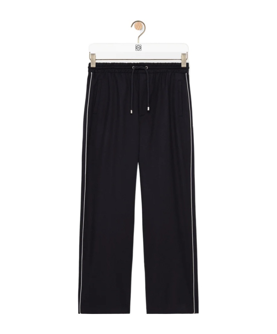 These drawstring pants from LOEWE are crafted of a wool blend and styled with contrast piping along the side seams. Drawstring waistband Side welt pockets 72% wool/13% polyester/10% cotton/4% viscose/1% elastane Dry clean Made in Italy SIZE & FIT Model measurements: 6'2" tall, 40" chest, 31" waist Model is wearing a US size Medium ABOUT THE BRAND For over 179 years, LOEWE has been synonymous with classic luxury and expertise in fine leather and tailoring. The Spanish house's latest chapter hones in on redefining the craft through an intellectual-yet-playful approach to fashion thanks to the modern eyes of design duo Jack McCollough and Lazaro Hernandez. The line's bold and vibrant take on the Spanish lifestyle is infused in its effortlessly chic handbags, shoes, ready-to-wear and accessories for women and men. Men Advcd Dsgnr - Mens Advanced Drtw > Loewe > Saks Fifth Avenue. LOEWE. Color: Navy Grey. Size: XXL.