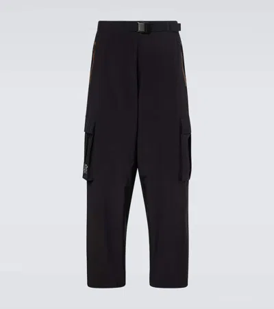 Material: 100% polyester. Care instructions: machine wash cold. Made in Vietnam. Designer color name: Black. Item color: black. Lining: 100% polyester. Attached belt. Pockets: zipped pockets, cargo pockets, back pocket. Closure: buckle fastening. Drawstring ankle cuffs.