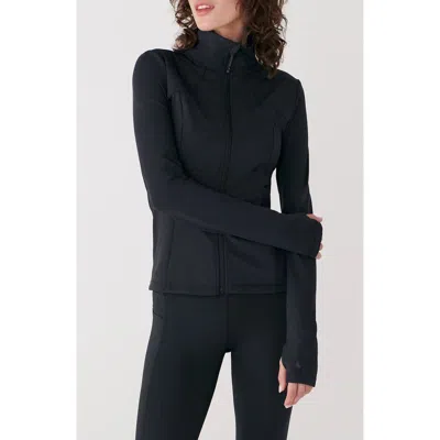 Go from studio to street in a breathable jacket shaped with princess seams and finished with thumbhole cuffs to keep cold hands cozier. Front zip closure Stand collar Long sleeves with thumbhole cuffs Side-seam zip pockets 79% recycled polyester, 21% elastane Machine wash, dry flat Imported