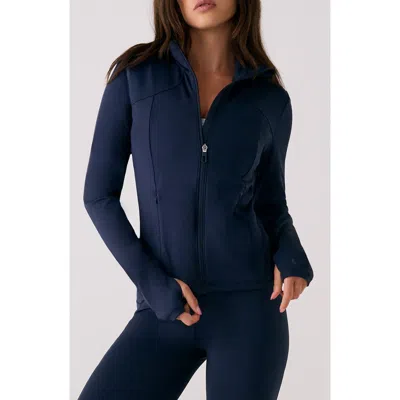 Go from studio to street in a breathable jacket shaped with princess seams and finished with thumbhole cuffs to keep cold hands cozier. Front zip closure Stand collar Long sleeves with thumbhole cuffs Side-seam zip pockets 79% recycled polyester, 21% elastane Machine wash, dry flat Imported