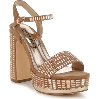 LONDON RAG Starlet Rhinestone Platform Sandal In Tan