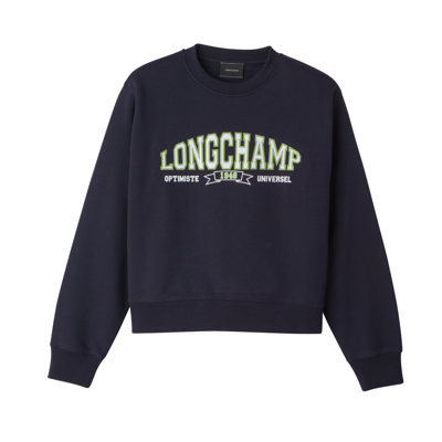 Inspired by the spirit of college sports, this Longchamp sweatshirt is designed with a traditional sporty cut and pairs perfectly with jeans and a pair of sneakers. This season, Longchamp's ready-to-wear collection is inspired by the eclectic, ever-changing yet universal world of the student. It highlights the diverse blend of cultures on the streets of Paris, where connectivity brings minds together through travel, knowledge, freedom and creativity. This is reflected through sporty, bold and bohemian style cues.