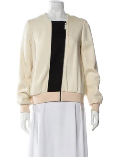 Longchamp Virgin Wool Jacket Neutrals Colorblock Pattern Collarless Fit: Jackets by Longchamp typically fit true to size. | Longchamp Virgin Wool Colorblock Pattern Jacket in Neutrals, Women's US6, FR38 | M