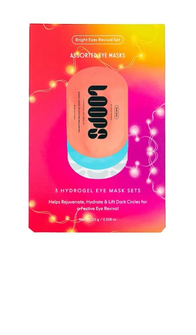 LOOPS Bright Eyes Revival Set in Beauty: NA. LOOPS Bright Eyes Revival Set in Beauty: NA. Give your under-eyes a radiant refresh with the Bright Eyes Revival Kit. Designed to hydrate, brighten, and rejuvenate, this glow-boosting trio reduces puffiness, fades dark circles, and revives tired eyes - so you look bright and refreshed for every celebration. Includes Weekly Reset Rejuvenating Hydrogel Eye Mask Set, Hyper Eyes Dark Circles Hydrogel Eye mask Set, and Dew Cloud Ultra Hydrating Hydrogel Eye Mask Set.. Vegan and cruelty-free Free of parabens, sulfates, and mineral oil. Nourish your eyes to the ultimate refresh with the Bright Eyes Revival Kit. Featuring Weekly Reset to hydrate and reduce wrinkles, Hyper Eyes to brighten and firm, and Dew Cloud to restore moisture, this trio targets puffiness and dark circles for radiant, rejuvenated eyes. Apply the textured side of the mask to your under eye area.. Peel off remaining film. Leave on for a LOOP (10 minutes), then peel off.. Tap remaining serum into skin for full ingredient absorption.. LOOR-WU31. 850050661771. LOOPS is a high-tech skincare brand that delivers targeted, dermatologist approved formulas to your face. Each LOOPS mask is designed to target a specific skin need, and created to fit into the moment of your day when you might need it the most. We make all LOOPS masks in South Korea, the home of face masks, using the most advanced technology available. Our signature Hydrogel second skin allows for deeper penetration of active ingredients (than your regular serum routine), whilst also creating the perfect environment for collagen production and cell rejuvenation. Our masks stick to your face and won?t slip, so you can get on with doing you, and let the mask do the work for you.