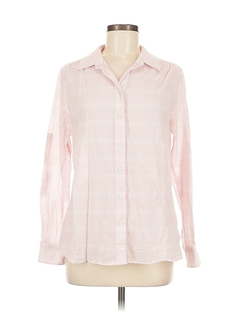 Lord & Taylor Long Sleeve Blouse, Size: Medium. Item Details: Pink, Square Neckline, Long Sleeves, Ruched, Women's Tops, 100% Cotton