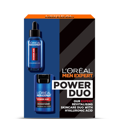 Introducing the ultimate 2-step giftset for him from L'Oréal Men Expert, designed to start your morning right. From the Men Expert Power Age Range, the anti-aging and revitalising skincare duo, infused with hyaluronic acid, this duo will help fight the first key signs of ageing and refresh your skin. Set Contents: Power Age Serum 30ml Give your skin the power to age better with L'Oréal Men Expert’s first ever multi-action serum: Power Age Hyaluronic Acid Serum. All the power of a duo of Hyaluronic Acid in an ultra-efficient multi-action serum for men. It smooths, firms and revitalises skin’s appearance, to help reduce the visible signs of ageing and keep skin looking healthy. Power Age Moisturiser 50ml Give your skin the power to age better with L’Oreal Men Expert’s Power Age Hyaluronic Acid Revitalising 24H Moisturiser. Power Age Revitalising 24H Moisturiser is infused with hyaluronic acid to target key signs of early ageing.