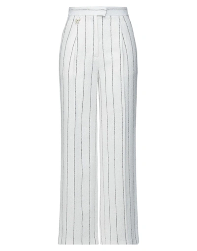 bouclé, contrasting applications, stripes, high waisted, straight leg, regular fit, button closing, zipper closure, multipockets , Color: White , Size: 8
