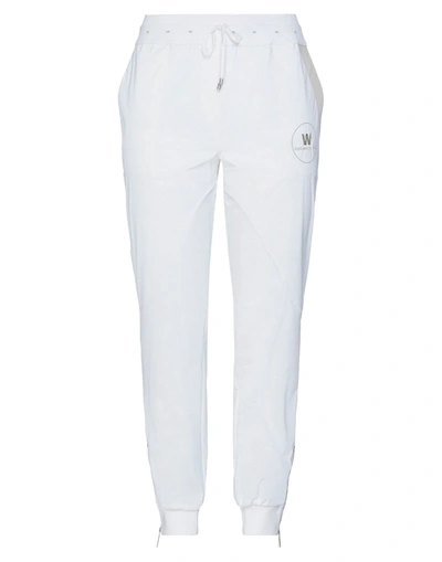 techno fabric, brand logo, contrasting applications, solid colour with appliqués, high waisted, elasticized waist, tapered leg, comfort fit, drawstring closure, zips at hem, multipockets, stretch, lamé , Color: White , Size: 12