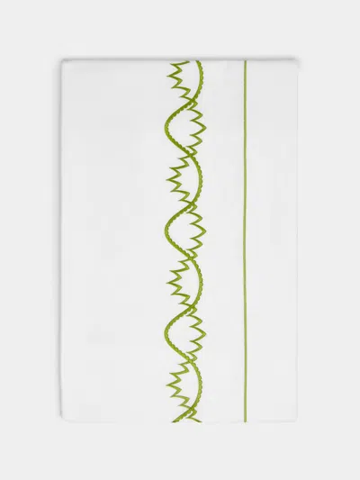Art Decò Hand-embroidered Cotton King-size Top Sheet Abask Luxury Gift In White