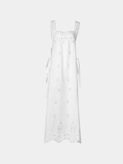 Fiocco Embroidered Cotton Long Dress Size: L In White