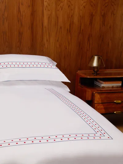 LORETTA CAPONI Stripes & Dots Hand-embroidered Cotton King-size Duvet Cover Abask Luxury Gift In White