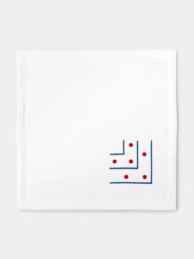 LORETTA CAPONI Stripes & Dots Hand-embroidered Cotton Washcloth Abask Luxury Gift In Neutral