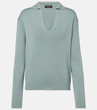 LORO PIANA Silk And Cotton Polo Sweater In Gray