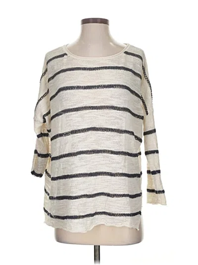 Lou & Grey Pullover Sweater, Size: X-Small. Item Details: Ivory, Stripes Pattern, Scoop Neck, 3/4 Sleeve, Women's Tops, Cotton/Nylon