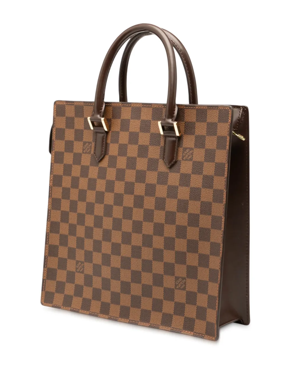 Pre-owned 2002 Damier Ebene Venice Sac Plat Tote Bag In Brown