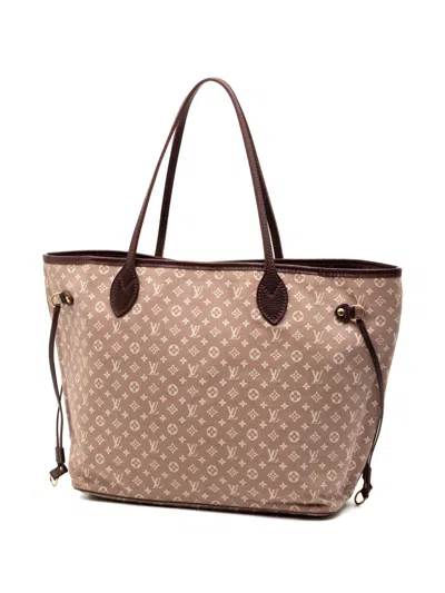The Idylle Neverfull MM features a canvas body with leather trim, flat leather handles, an open top lobster clasp closure, and an interior zip pocket. Pink. Serial Number: SA2112. This item has no inclusions. Condition: GOOD. This previously owned and used item is in good condition with minimal signs of use. This may include fading of material or plating and scratches. Please refer to the photos on this product page for a detailed view of the item, including any damages declared.
