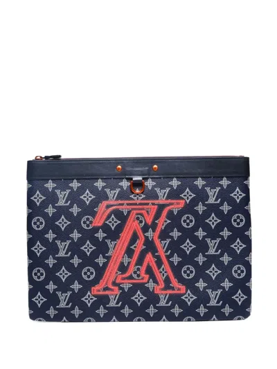Pre-owned 2018 Monogram Ink Upside Down Apollo Clutch Bag In Blue