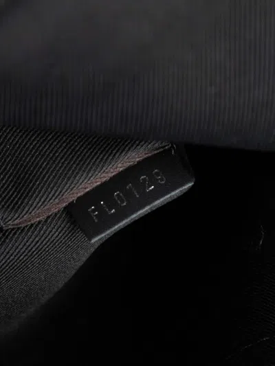 monogram eclipse canvas body top handle adjustable leather back straps zip around closure front exterior zip and slip pockets interior slip pockets black Serial Number: FL0129 This item has no inclusions. Condition: EXCELLENT. This previously owned item is in near-perfect condition with no signs of damage or use. Please refer to the photos on this product page for a detailed view of the item, including any damages declared.