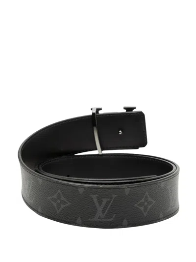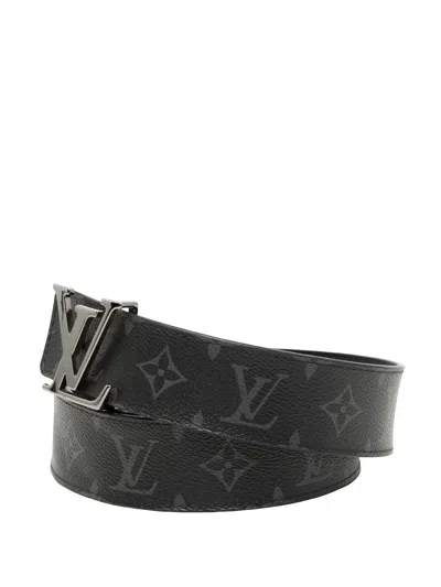 Pre-owned 2020 Monogram Eclipse Lv Initiales Reversible Belt In Black