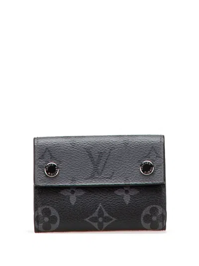 Pre-owned 2021-2025 Monogram Eclipse Reverse Discovery Compact Wallet Small Wallets In Black