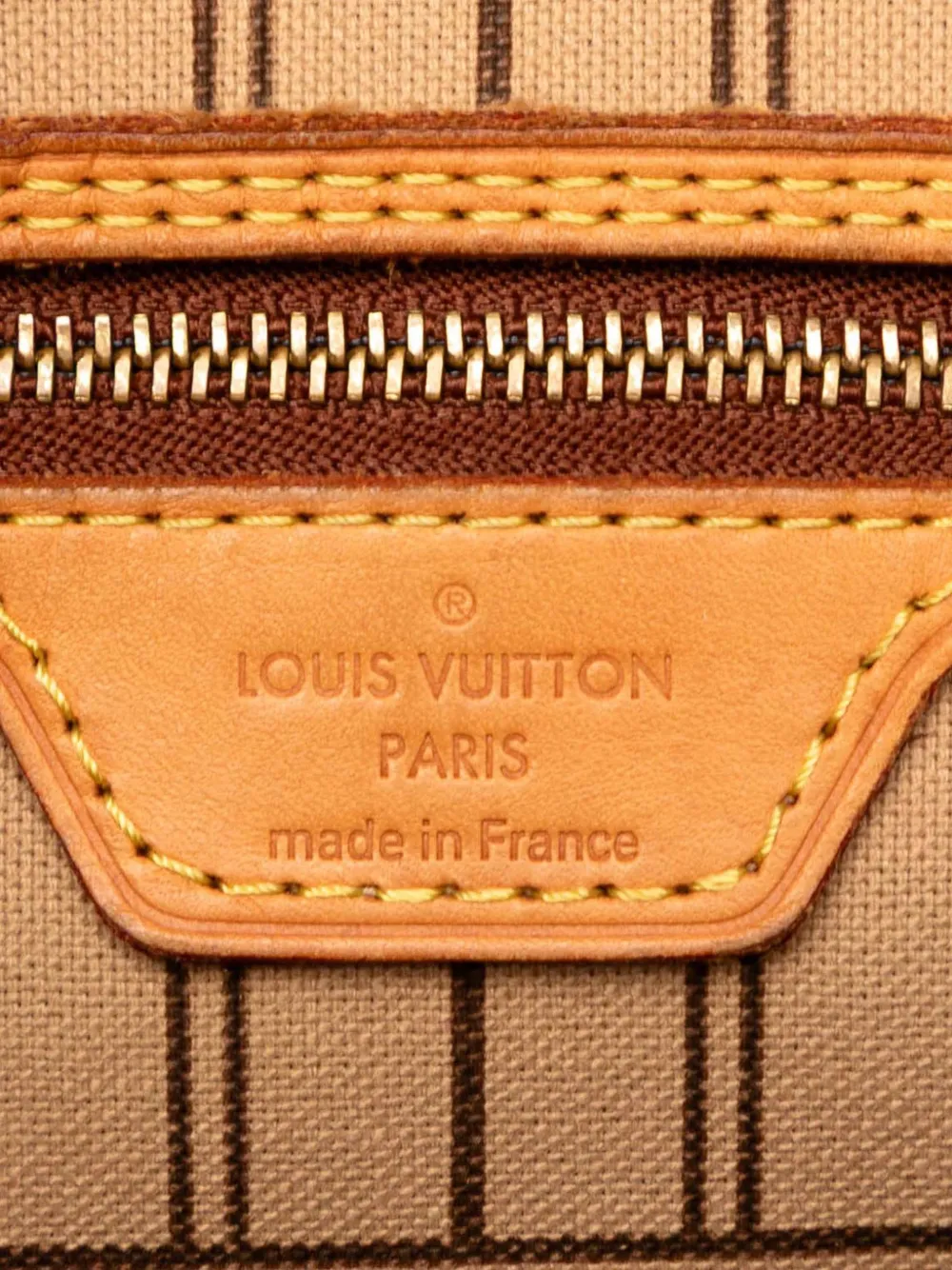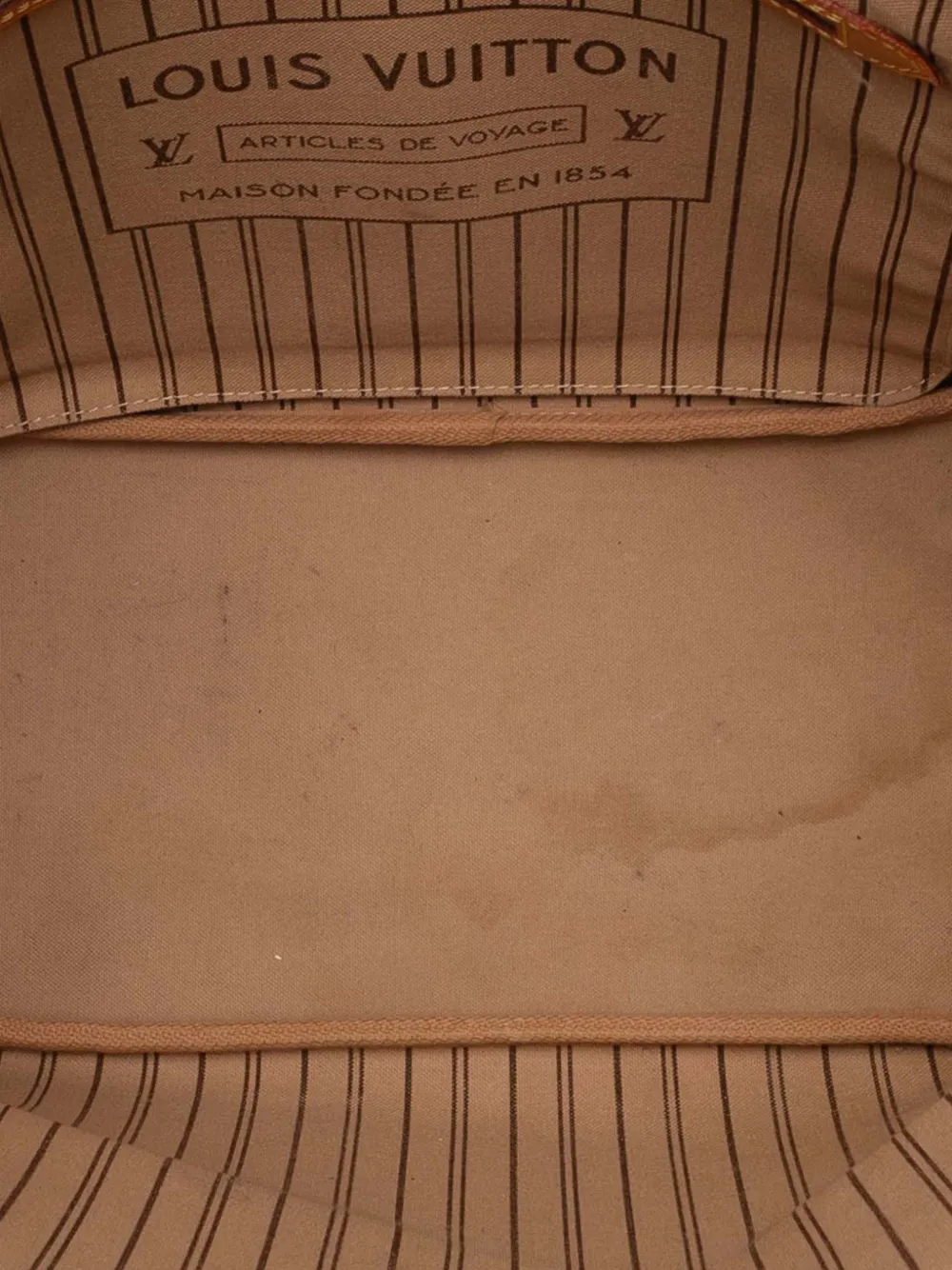 monogram canvas body with vachetta leather trim flat vachetta leather handles open top with a lobster clasp closure interior zip pocket pouch inclusion brown Serial Number: LU0271 Inclusions: pouch. Condition: GOOD. This previously owned and used item is in good condition with minimal signs of use. This may include fading of material or plating and scratches. Due to the exclusivity of this item and its limited availability, processing and delivery might take longer than usual. Declared Damages: Interior Lining Feature(s) Moderate Stains. Handle/Strap Feature(s) Moderate Stains. Please refer to the photos on this product page for a detailed view of the item, including any damages declared.