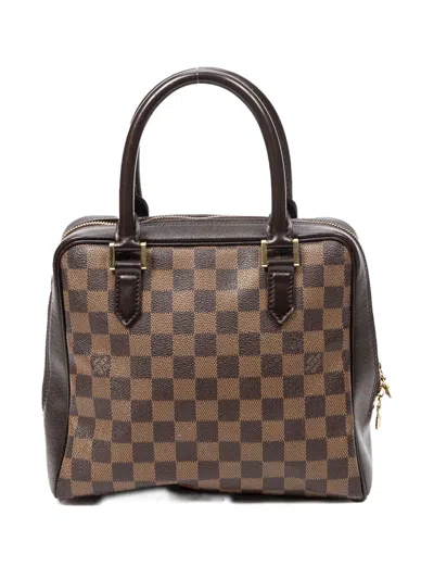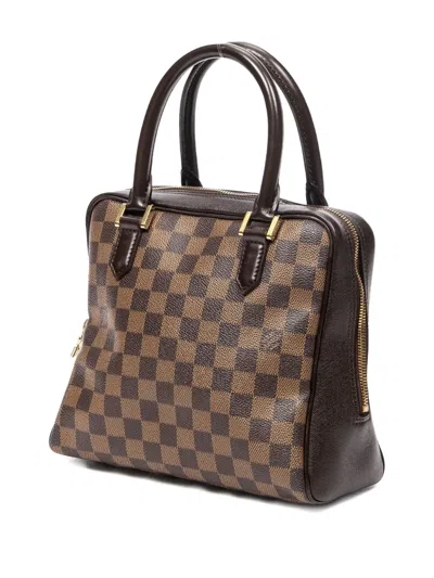 brown damier check pattern two top handles zip fastening gold-tone hardware
