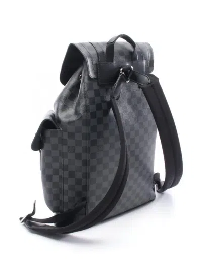 black Damier Graphite canvas leather trim front flap closure drawstring fastening