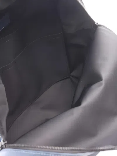 navy monogram pattern leather trim top handle adjustable shoulder straps external side pockets top zip fastening Condition: EXCELLENT. This previously owned item is in near-perfect condition with no signs of damage or use.