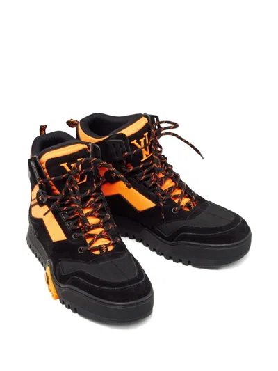 black suede logo patch chunky rubber sole lace-up closure Condition: GOOD. This previously owned and used item is in good condition with minimal signs of use. This may include fading of material or plating and scratches.