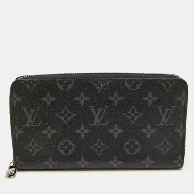 Pre-owned Monogram Eclipse Canvas Horizontal Zippy Wallet In Black
