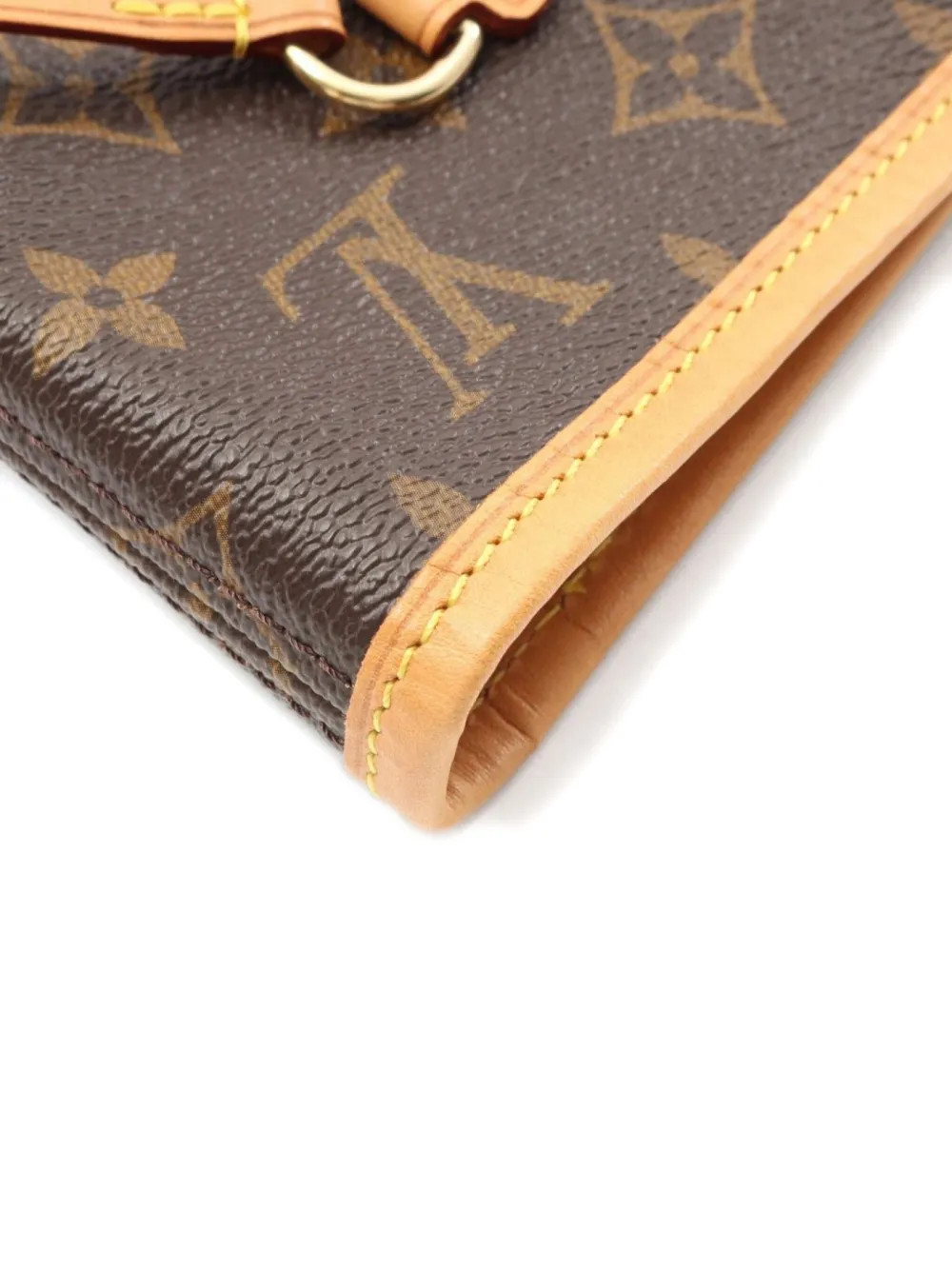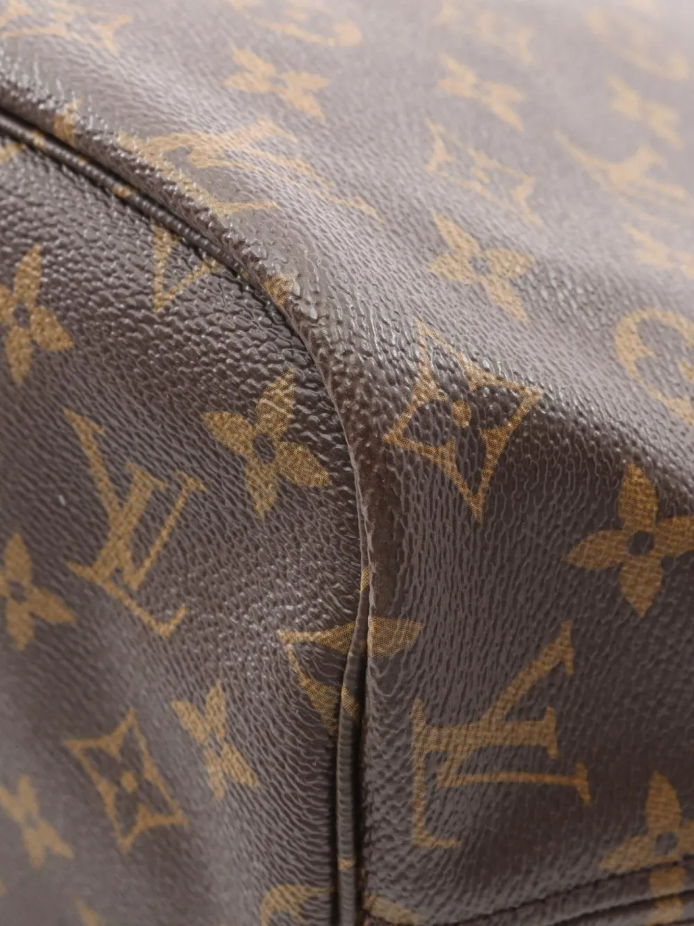 brown monogram pattern vachetta leather trim leather handles drawstring closure Please refer to the Size & Fit tab to learn more about this item's dimensions. Condition: EXCELLENT. This previously owned item is in near-perfect condition with no signs of damage or use.