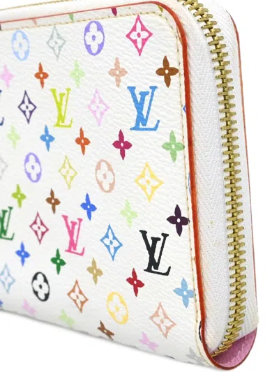 white multicoloured monogram print zip-around closure multiple card slots internal zip pocket