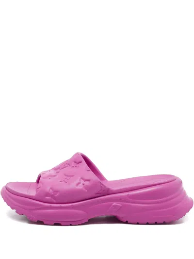 Pre-owned Pool 55 Monogram Rubber Slides In Pink