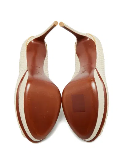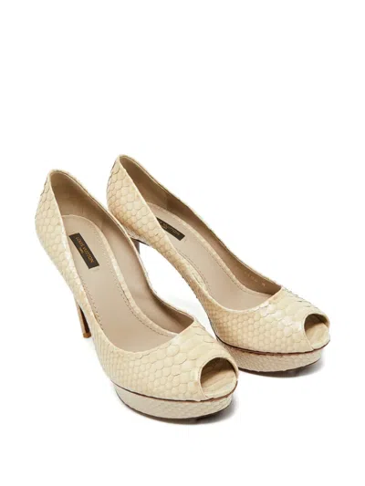 Pre-owned Python Peep-toe Sandals In Neutral
