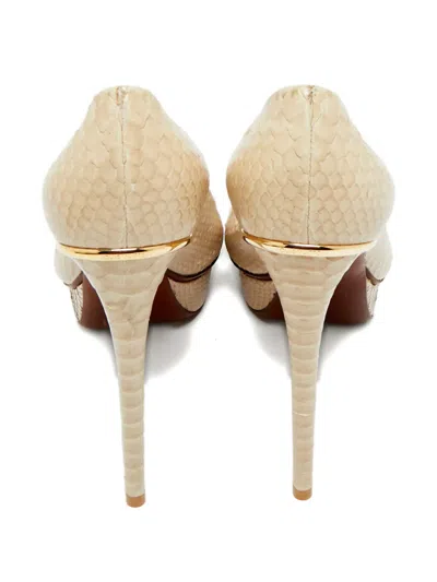 beige python leather peep-toe stiletto heel gold-tone detail Condition: EXCELLENT. This previously owned item is in near-perfect condition with no signs of damage or use.