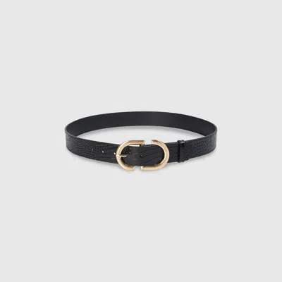 Curved Buckle Belt - Black Croc - M Learn more.