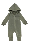 L'OVEDBABY Hooded Organic Cotton Zip Romper In Blue