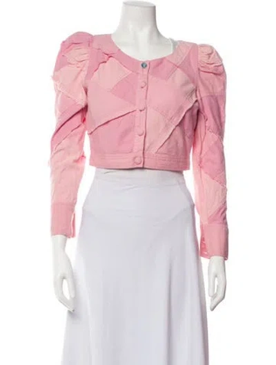 Love Shack Fancy Denim Jacket Pink Raw-Edge Trim & Pointed Collar Button Closure Designer size 0. Fit: Jackets by Love Shack Fancy typically fit true to size. | LoveShackFancy Denim Jacket in Pink, Women's XS