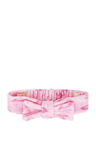LoveShackFancy Headband With Bow in Bubblegum Valentine. LoveShackFancy Headband With Bow in Bubblegum Valentine. 100% Cotton. Slip-on styling. Printed lip detail. Oversized bow shape and soft woven texture. LESH-WU2. LH067-3273. LoveShackFancy is a collection of hand-dyed and printed silk dresses and separates. It embodies a lux bohemian lifestyle with whimsical pieces that can take you from the beaches of Tulum to an elegant dinner party in NYC.